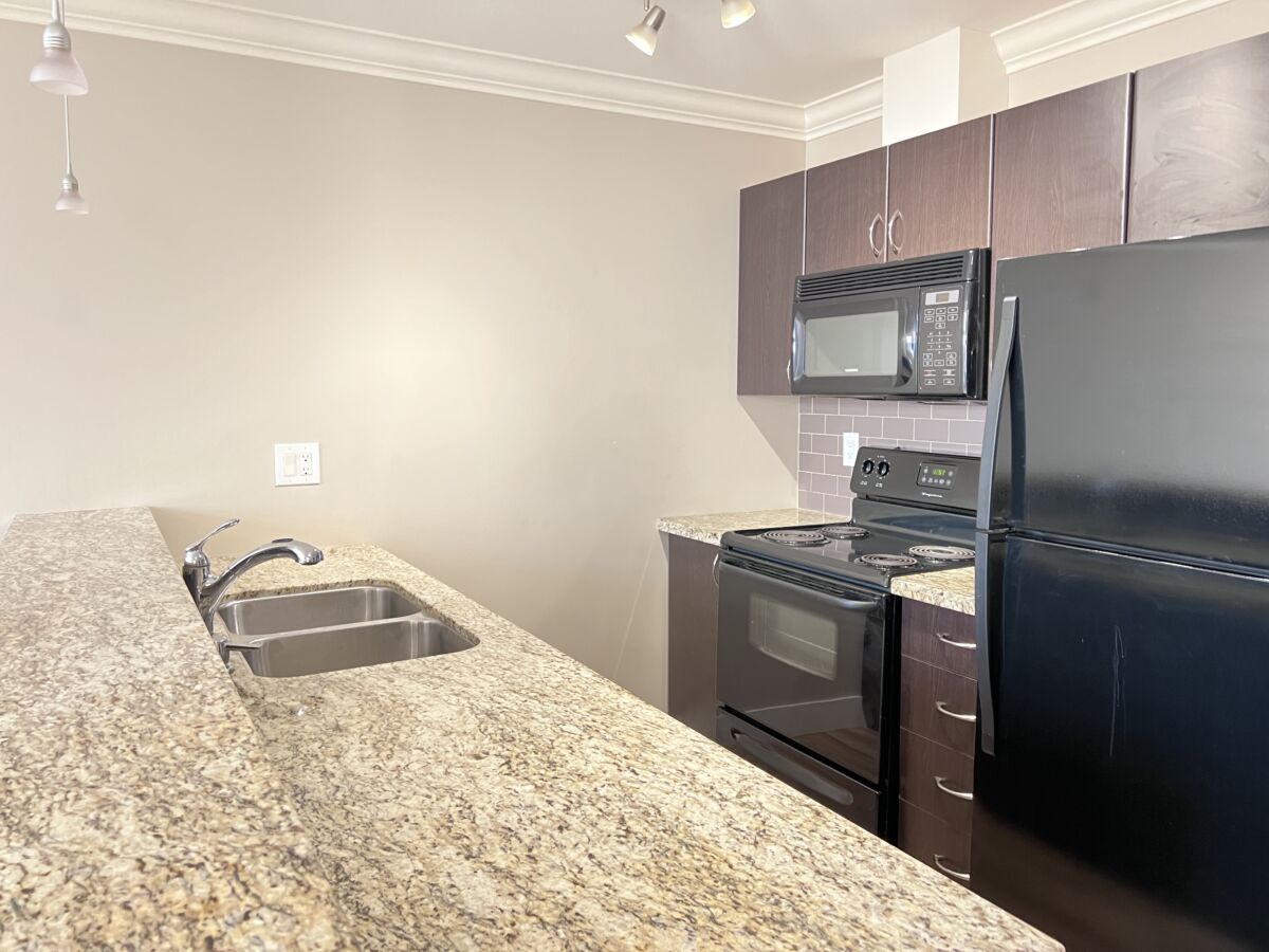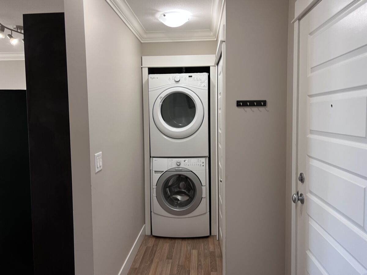 Spacious 1 bedroom and den with open concept kitchen plus in suite laundry. Good size balcony and 2 underground parking. Walking distance to Historic downtown Abbotsford.